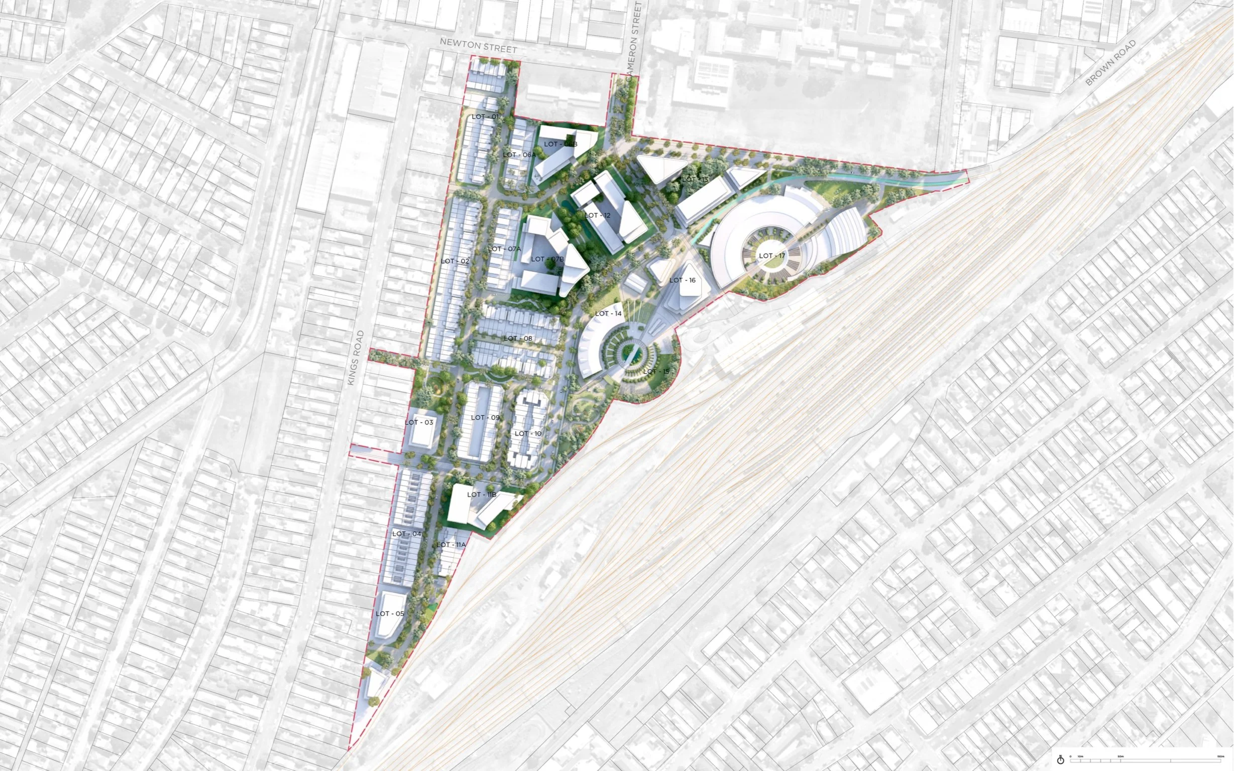 The master plan proposition includes a mix of medium and high density housing, a town-centre retail node and a diverse public domain that frames the various heritage elements that include turntables and locomotive sheds..The Broadmeadow Master Plan envisages a contemporary mixed use neighbourhood that fuses unique railway heritage, diverse commercial and cultural destinations, and new homes, set within a high quality public domain.
